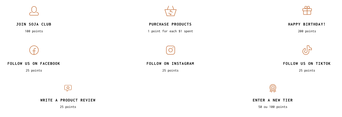 It's easy, the more loyal you are to the brand, the more S&CO. points you earn! redeem those points for goodies of your choice. don't forget to log in at each visit in order to fully benefit from the program!